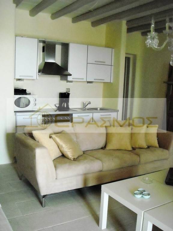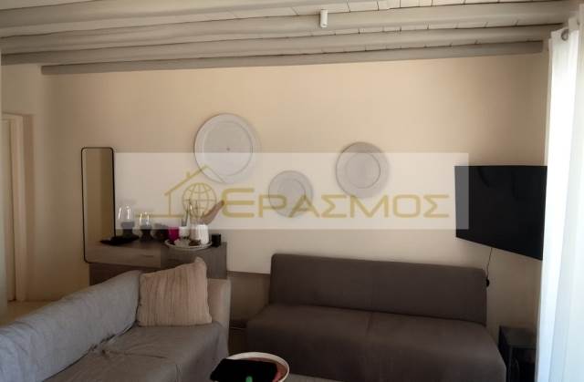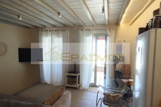 Mykonos - Faneromeni - Koynoypas. For sale stone apartment of traditional Cycladic charm with endless Aegean views. In the heart of Mykonos, within a gated estet of 6000sq.m. with controlled entrances, awaits this 53sq.m. fully furnished apartment that combines authenticity with comfort. Enjoy absolute serenity and panoramic views of the endless blue, with your gaze travelling across to Tinos and Syros, while magical sunsets offer a new life experience every single day. The propery includes: spacious living room, open space kitchen, 2 bedroom, comfortable bathroom, large garden and access to the complex's swimming pool. exclusive parking space. Its location is ideal: just 2 km from the airport, 3,5km from Mykonos town and 2,5km from the beautiful beaches. A home that rediates the Mykonian spirit, offering the tranquility everyone seeks, without losing direct access to everything that makes the island unique